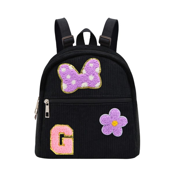 2 3 4 5 6 Year Old Girl Gifts Chenille Initial Mouse Bow Mini Backpack, Corduroy Toddler Backpacks Christmas Birthday Gifts for Girls 2-4 5-6, Black Mini Diaper Bag Must Haves for Park Travel Letter G