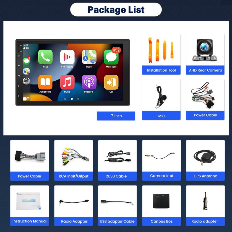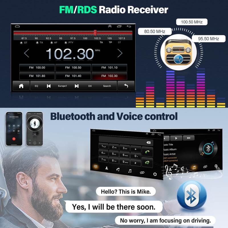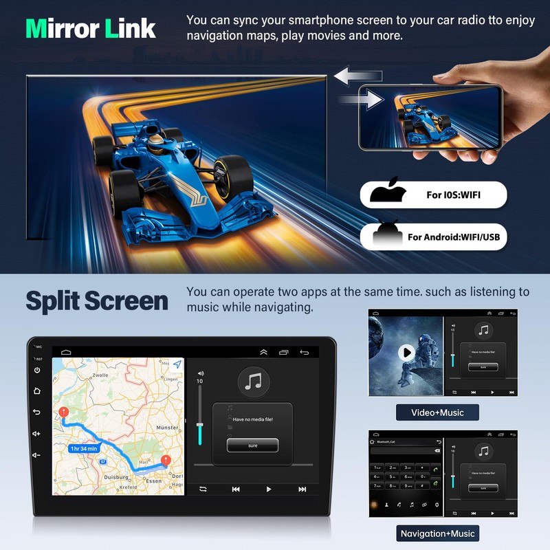 - 【Built-in Carplay & Android Auto】Bulit in Wireless Carplay & Wired Android Auto, support to use smart voice assistant or touch the display, you can get directions, make calls, send and receive messages, and enjoy music etc. A smarter, safer and more fun way to use your phone in the car, and keep you stay focused, connected and entertained.