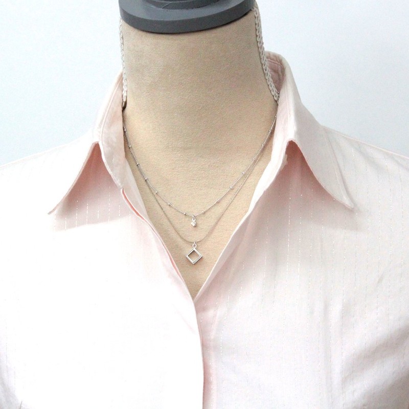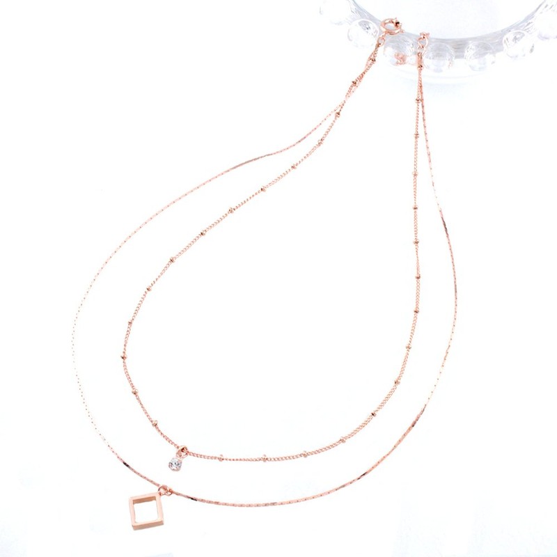 [ジュエリーショップエム] レディース ネックレス 2連 チェーン ペンダント アクセサリー メタル スクエア モチーフ 日本製 3487 ピンクゴールド