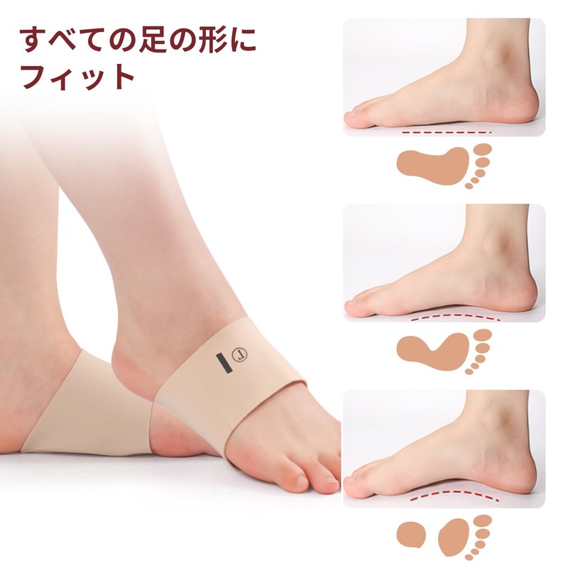 • 【ぴったりフィット】伸縮性のある素材が足にしっかりフィットし、歩行時のズレを防ぎます。靴を履いたままでもご使用いただけますのでご安心ください。足にぴったりフィットし、長時間使用しても快適です。