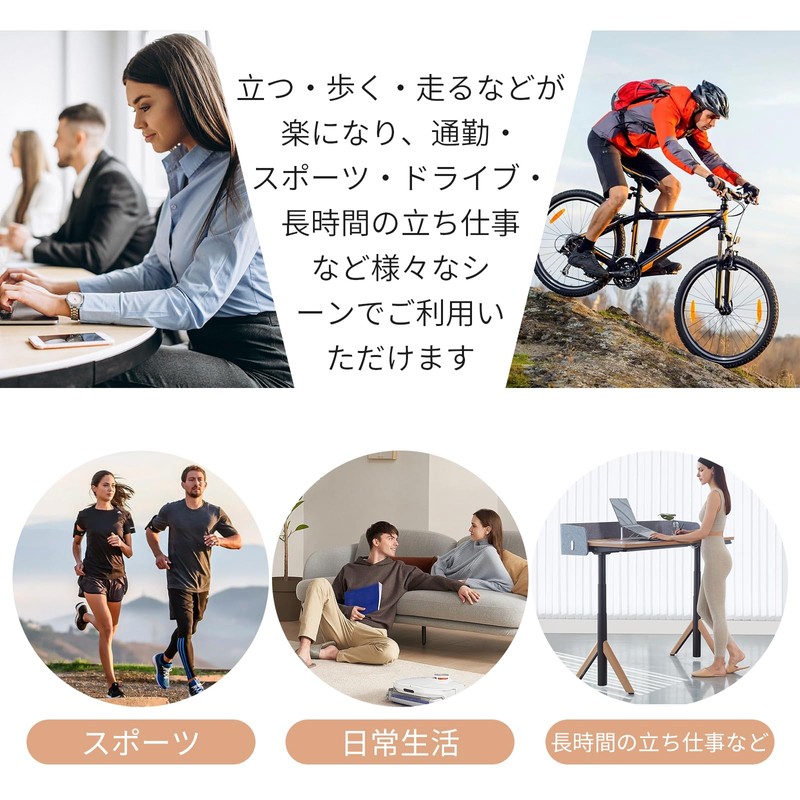 • 【幅広い用途】素足、靴下、アウターソックス、靴と合わせて着用できます。長時間の立ち仕事、ランニング、アウトドアハイキング、登山、ヨガなどの運動シーンにも最適です。また、通勤、通学、ウォーキングなどの日常生活にも適しています。