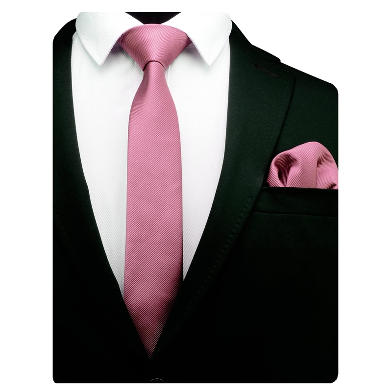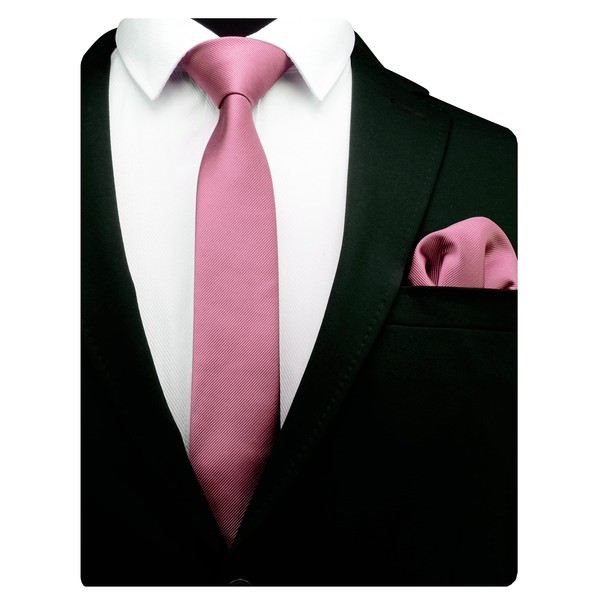 2.4" Dusty Rose Skinny Tie for Wedding Solid Formal Slim Necktie and Handkerchief Set For Men (0754-41)