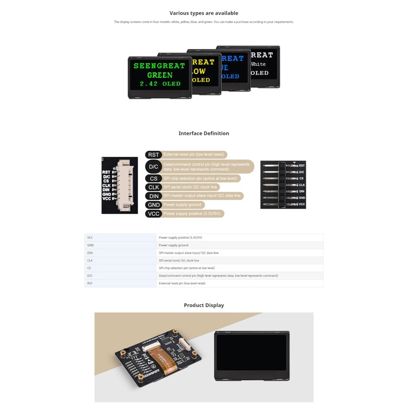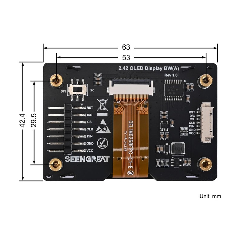- Space-Saving Design: Featuring an ultra-narrow bezel and compact size, this OLED module is perfect for applications where space is limited, fitting seamlessly into your electronic designs.