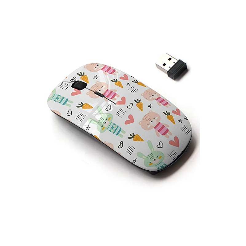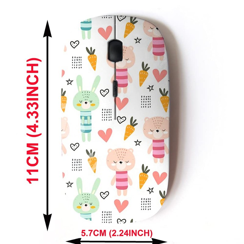 2.4G Wireless Mouse with Cute Pattern Design for All Laptops and Desktops with Nano Receiver - Cartoon Bunnies Bears