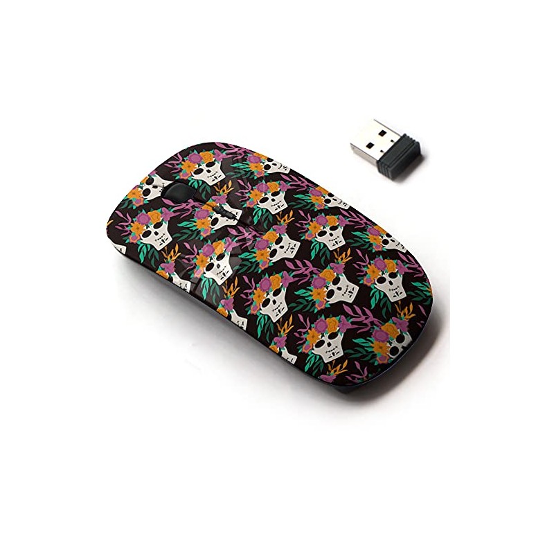 2.4G Wireless Mouse with Cute Pattern Design for All Laptops and Desktops with Nano Receiver - Dia de Los Muertos Traditional