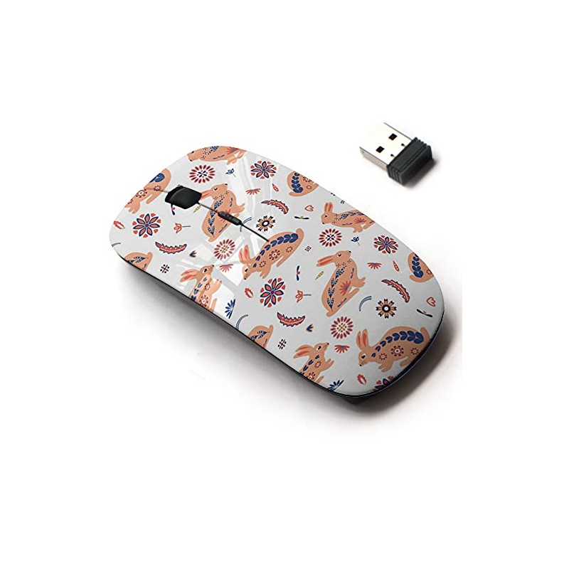 2.4G Wireless Mouse with Cute Pattern Design for All Laptops and Desktops with Nano Receiver - Easter Bunnies Floral