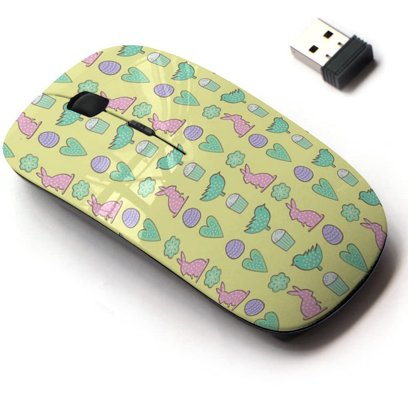 2.4G Wireless Mouse with Cute Pattern Design for All Laptops and Desktops with Nano Receiver - Easter Cookies Bunny Flowers