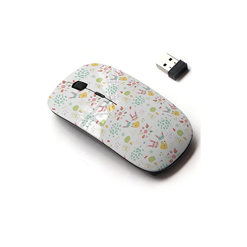 2.4G Wireless Mouse with Cute Pattern Design for All Laptops and Desktops with Nano Receiver - Easter Nursery Bunnies