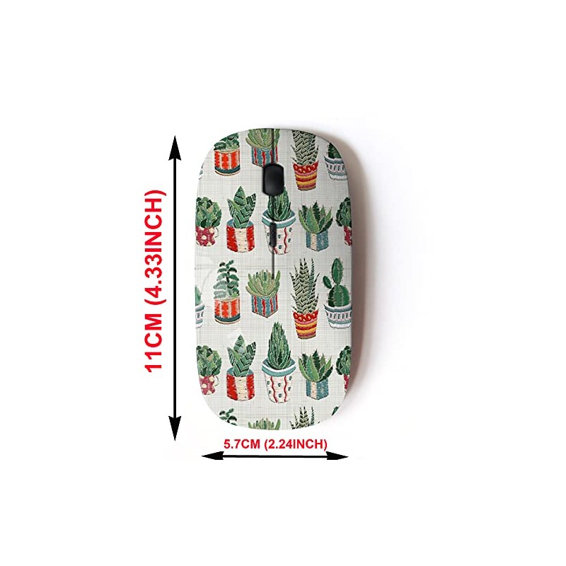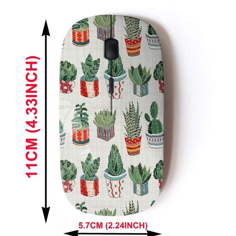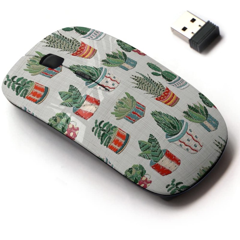 2.4G Wireless Mouse with Cute Pattern Design for All Laptops and Desktops with Nano Receiver - Embroidery Succulents Cactus