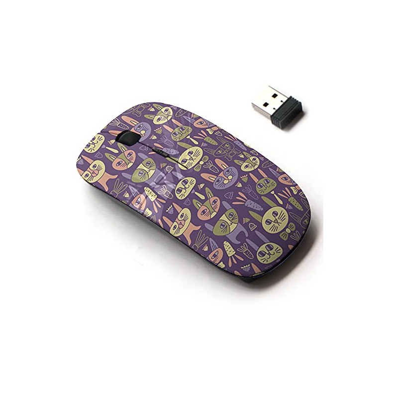 2.4G Wireless Mouse with Cute Pattern Design for All Laptops and Desktops with Nano Receiver - Funny Bunnies