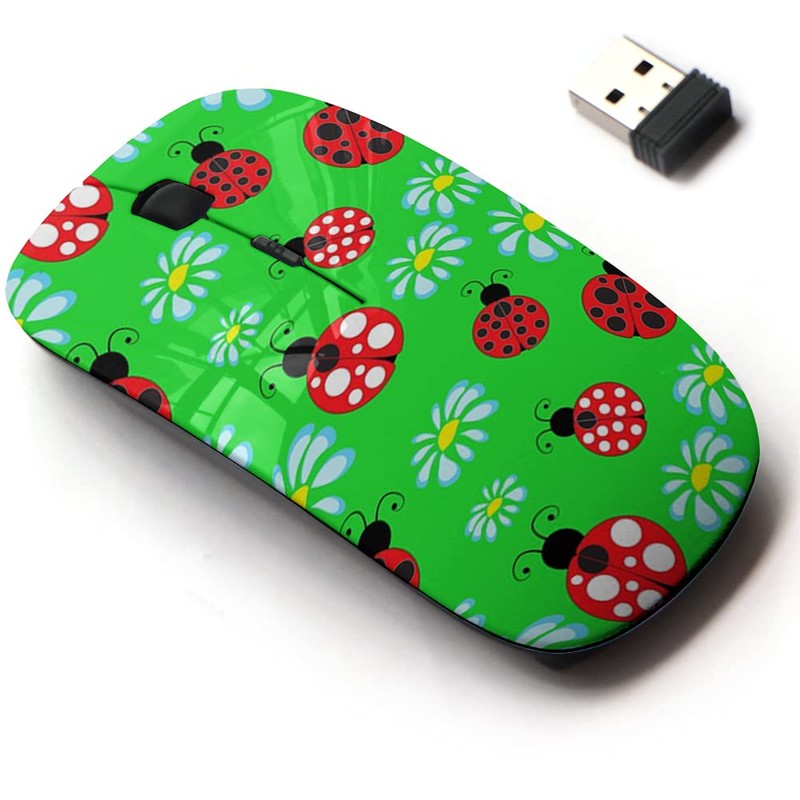 2.4G Wireless Mouse with Cute Pattern Design for All Laptops and Desktops with Nano Receiver - Ladybugs can be