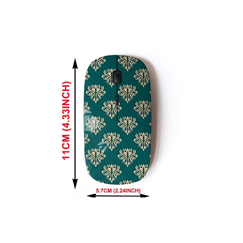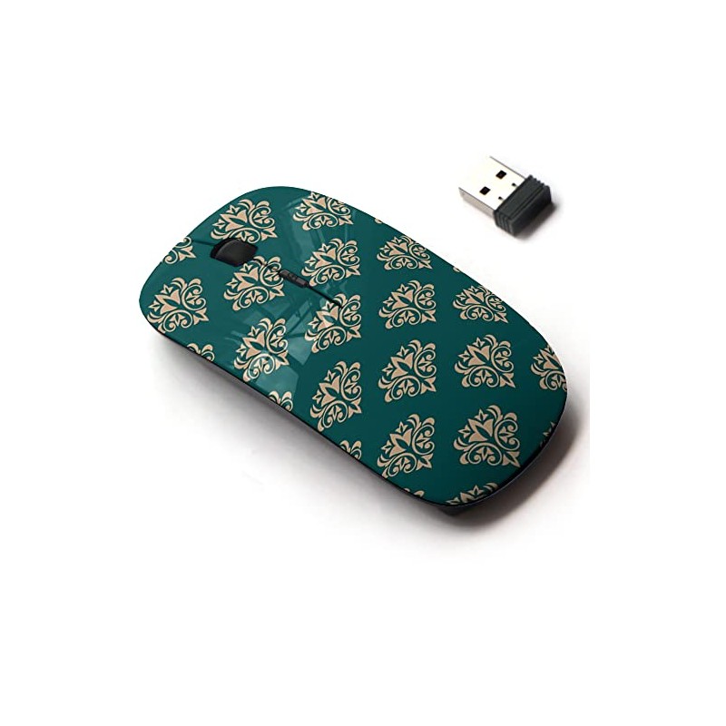 2.4G Wireless Mouse with Cute Pattern Design for All Laptops and Desktops with Nano Receiver - Pretty Green Retro Floral Motif
