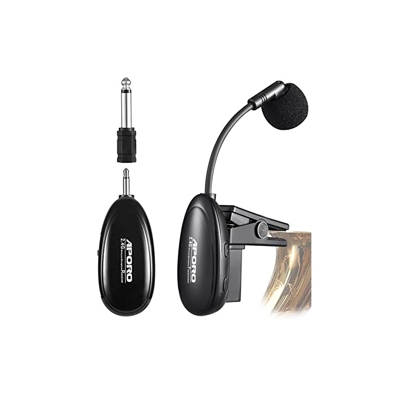 2.4G Wireless Saxophone Microphone Clip on Music Instruments Microphone, Wireless Receiver and Transmitter, for Saxophone and More