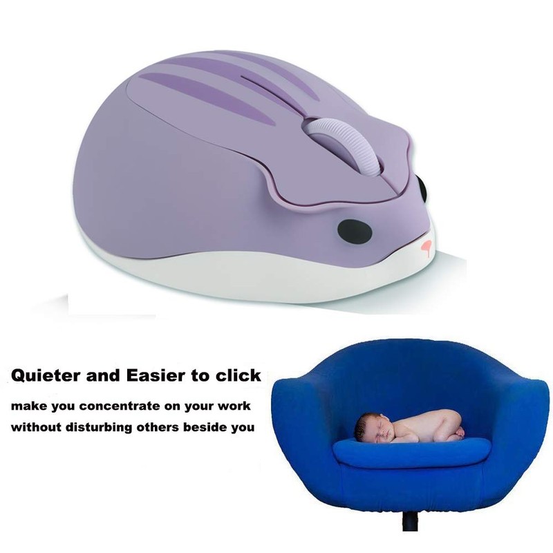 2.4GHz Wireless Mouse Cute Hamster Shape Less Noice Portable Mobile Optical 1200DPI USB Mice Cordless Mouse for PC Laptop Computer Notebook MacBook Kids Girl Gift (Purple)