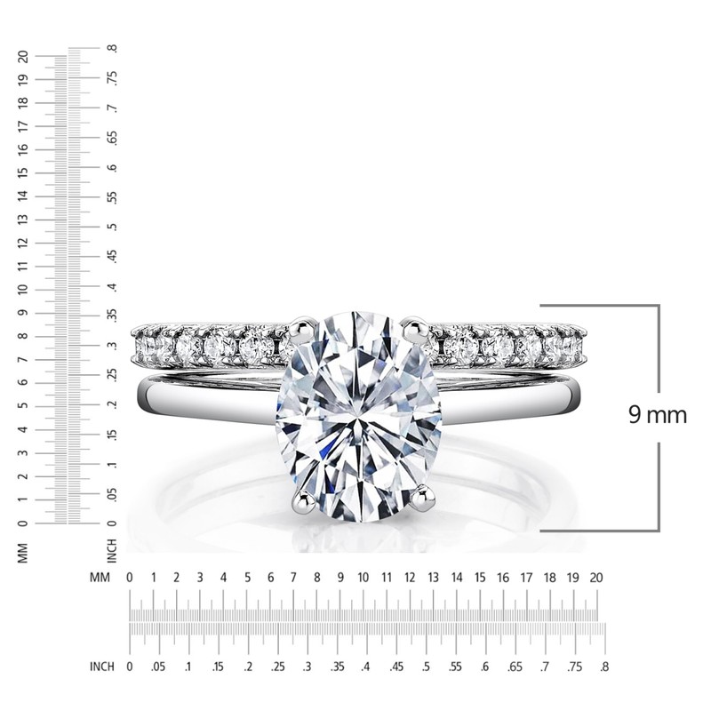 - Certified Excellence: The heart of this ring is a stunning 2 carat oval-cut moissanite center stone, accompanied by a GRA certificate, guaranteeing its authenticity and exceptional quality.