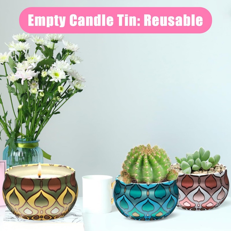 • Premium Material Quality: Each empty tin is crafted from durable tin-plated iron, offering shatter-resistant strength while remaining lightweight and corrosion-resistant. Paired with tight-fitting lids, they ensure airtight seals, effectively reducing the evaporation rate of the candles. Once fully used, simply clean the empty tins and repurpose them for DIY candle making, storing small items, or even growing mini plants—making them a wonderful reusable and eco-friendly choice