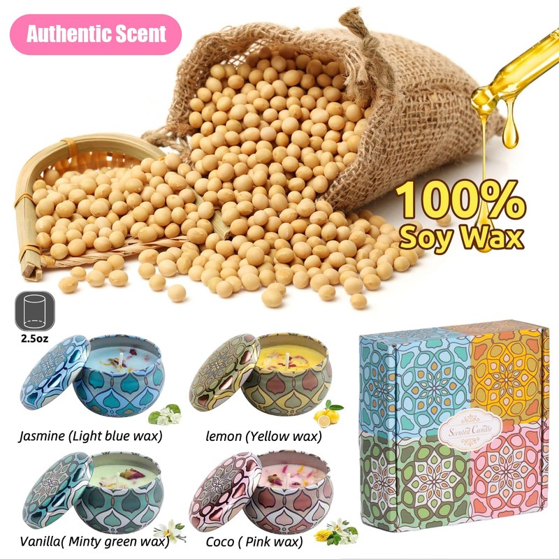 4-Piece Aromatherapy Candle Gift Set:Crafted with 100% natural soy wax and a natural cotton wick, these candles deliver a longer burn time, stable flame, and eco-friendly performance. Each set includes four distinct fragrances:Blue-Jasmine, Yellow-Lemon, Green-Vanilla, and Pink-Cocoa to refresh your space and soothe your senses. Perfect for any setting: bathrooms, living rooms, bedrooms, kitchens, offices, or travel. The elegant floral packaging and dried petals make it an ideal gift for Mother’s Day, Christmas, birthdays, Thanksgiving, Valentine’s Day, or any special occasion.