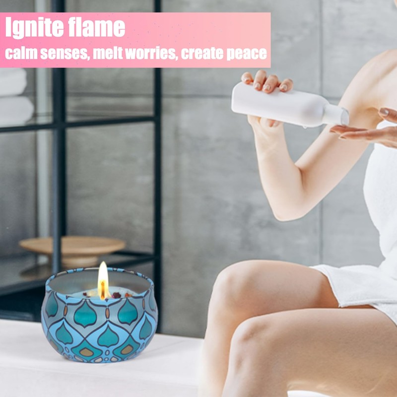 • Extended Burn Time: Each 2.5oz aromatherapy candle burns for 15 hours, offering a total of 60 hours of soothing fragrance per set. Compact and charming (2.36 x 2.36 x 0.55 inches), these candles deliver long-lasting ambiance while fitting perfectly in small spaces.