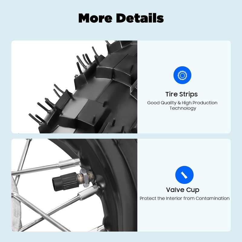 - Strong Control: Dirt bike tires are designed with oblique radials, with a large tread pattern, which can be used as a direct replacement, and are made of a good anti-skid alloy material, which is sturdy and durable, with fine workmanship, wear-resistant and non-slip