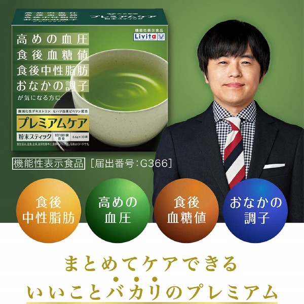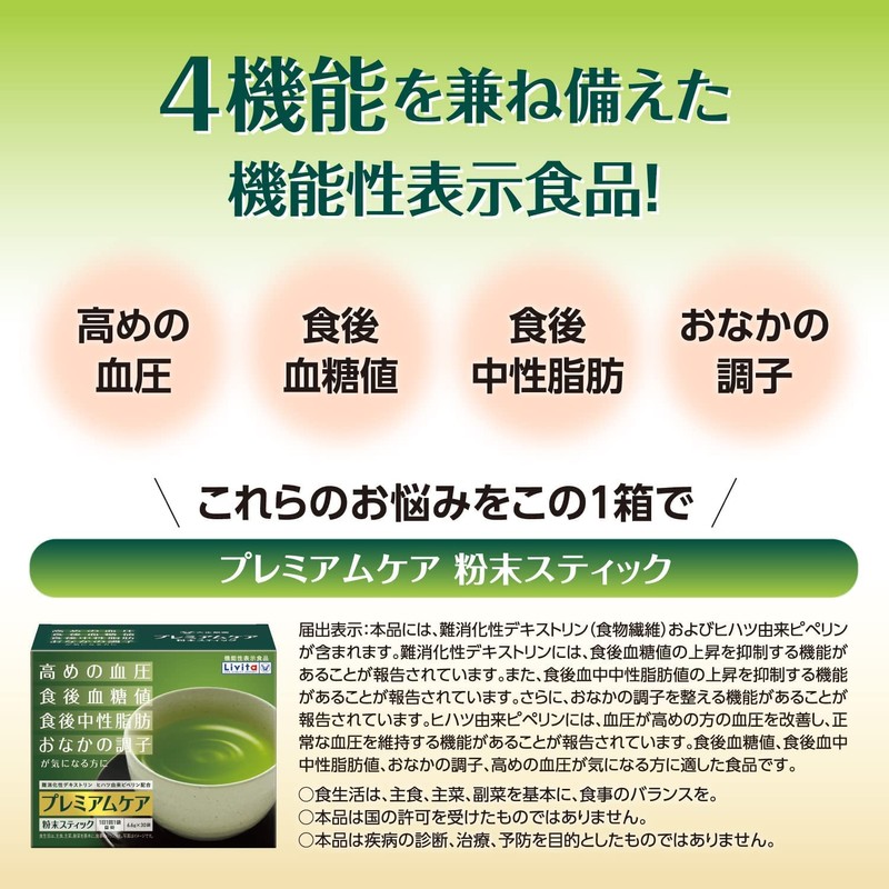 【2箱60日分】大正製薬 リビタ プレミアムケア粉末スティック30袋(30日分)x2箱【機能性表示食品】/高めの血圧・食後血糖値・食後中性脂肪・おなかの調子が気になる方に/4つの機能/1日1回1袋/静岡県産茶葉100%使用×30袋x2箱(4987306040038-2)