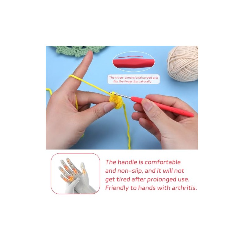 • Comfortable Crochet Handle: Our crochet handle is ergonomic, rubberized grip and comfortable handle shape reduce hand fatigue and ensure you are efficient and comfortable during use.