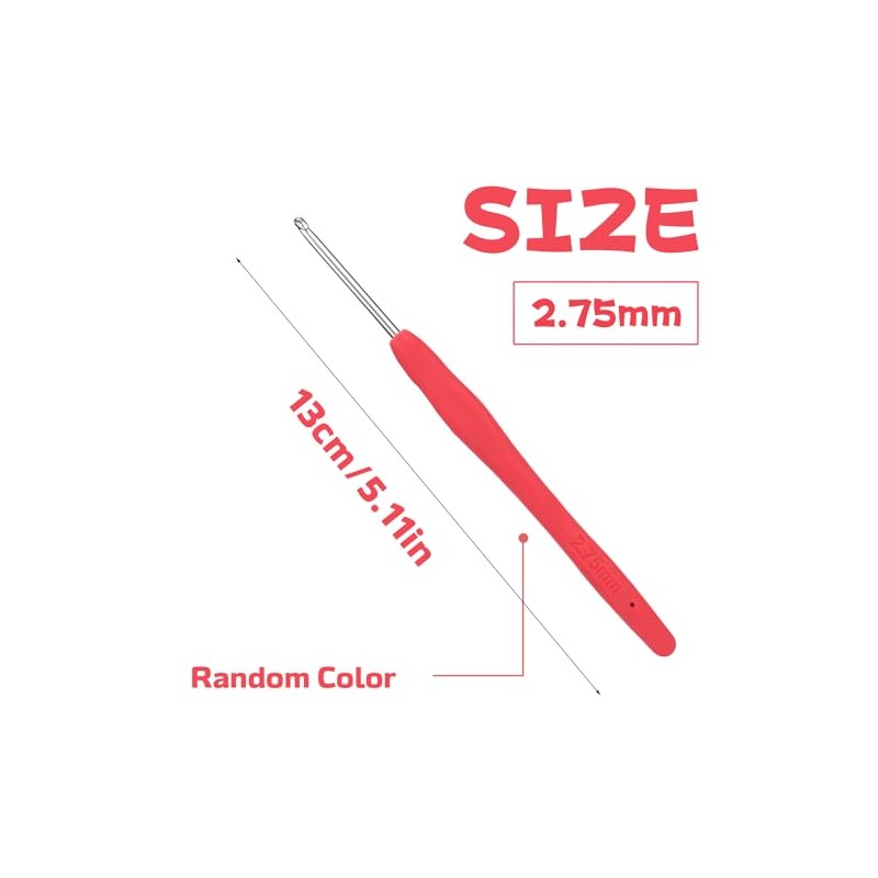 2.75 mm Crochet Hook, Ergonomic Handle for Arthritic Hands, Extra Long‚ÄØ Knitting Needles for Beginners and Crocheting Yarn (2.75 mm)