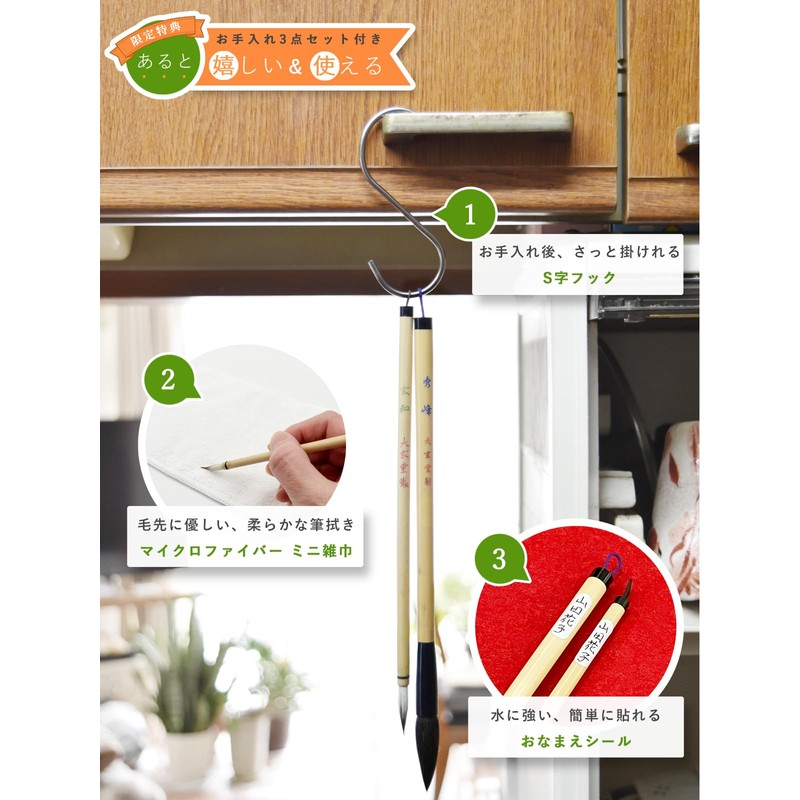 【学生用、初心者 オススメNo.1の筆セット】 小学校中学年から中学生向けの使いやすく、書きやすい筆セット。 (大人の初心者の方にもおすすめです。) 【太筆 良寛 りょうかん】 硬すぎず、太すぎず、筆の力の入れ具合で様々な表現が可能な太筆。 店頭販売でも多くの学生が愛用しており「書きやすい!」と評価いただいております。 【細筆 宝泉 ほうせん】 墨がかすれにくく、安定感のある細筆。 適度な硬さ、心地よい弾力でしなやかにも力強くも書くことができます。 【筆 軸のサイズ(ミリ)】 ・太筆 4号相当 | 全長:約247mm 軸の長さ:約200mm 軸の径:約9.5mm 軸の径(最大):約12.5mm ・細筆 8号相当 | 全長:約205mm 軸の長さ:約180mm 軸の径:約7.3mm 【穂のサイズ(ミリ)】 ・太筆(羊毛、馬毛) | 穂の長さ:約47mm 穂の径:約10mm ・細筆(羊毛、馬毛) | 穂の長さ:約25mm 穂の径:約5.8mm