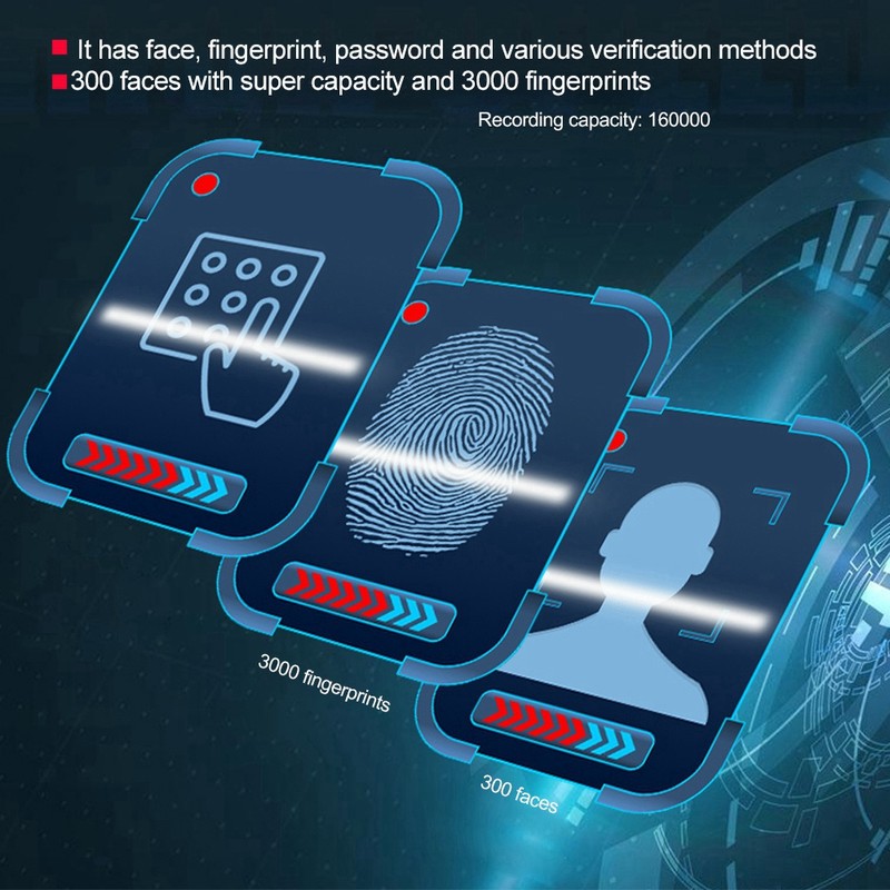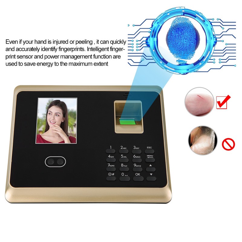 1、This attendance system will help you eliminate concerns about handling employee attendance records. 2、 Three unlock methods: face, fingerprint and password, which is convenient and practical. 3、2.8inch TFT LCD screen with dual cameras, have a high recognition rate, and it can prevent others from helping to enter. 4、Even if your hand is injured, it can quickly and accurately identify fingerprints. 5、Adopting the intelligent print sensor and power management function, energy-saving maximumly.