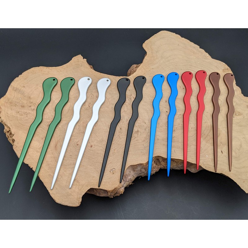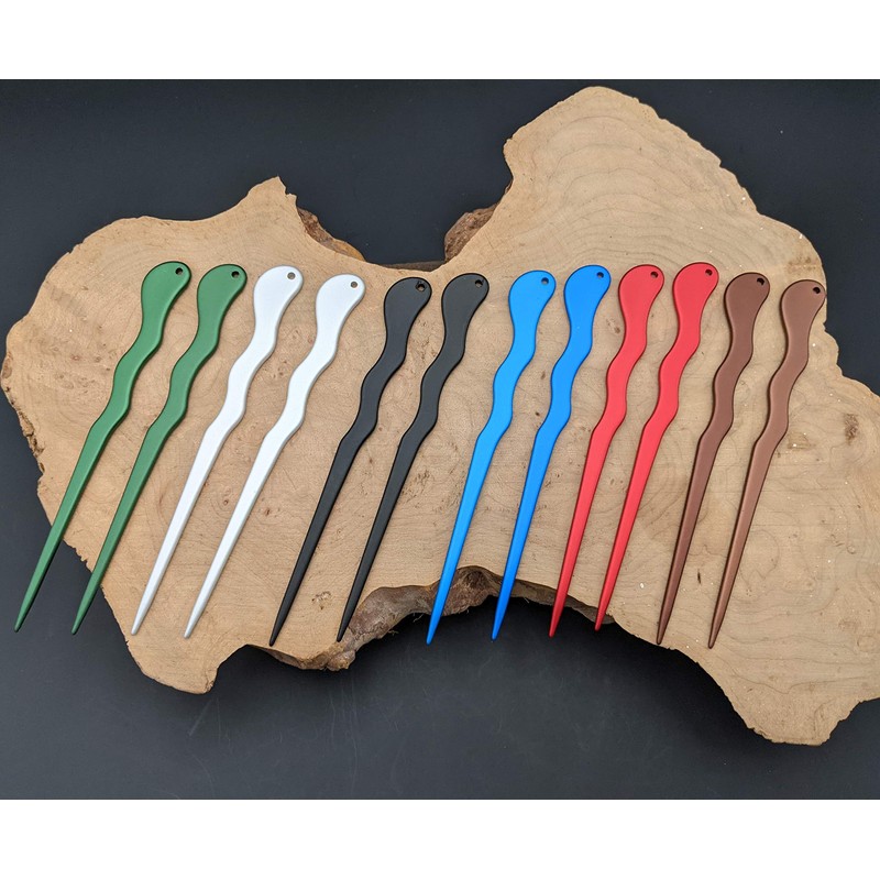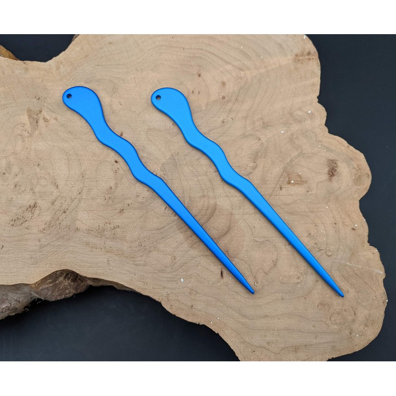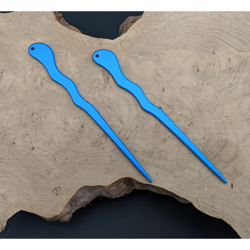 (2) Anodized Aluminum Matte Finish Spiral 6" Hair Stick Unbreakable Waterproof Pick Pic Pin Fork (Aqua)