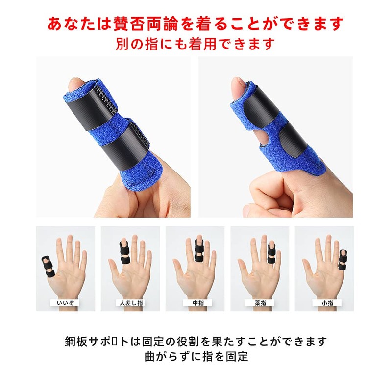 2枚入り 指 サポーター 指保護 固定用金属プレート 通気性 耐久性 フリーサイズ(左右兼用)調節可能 (ブラック)