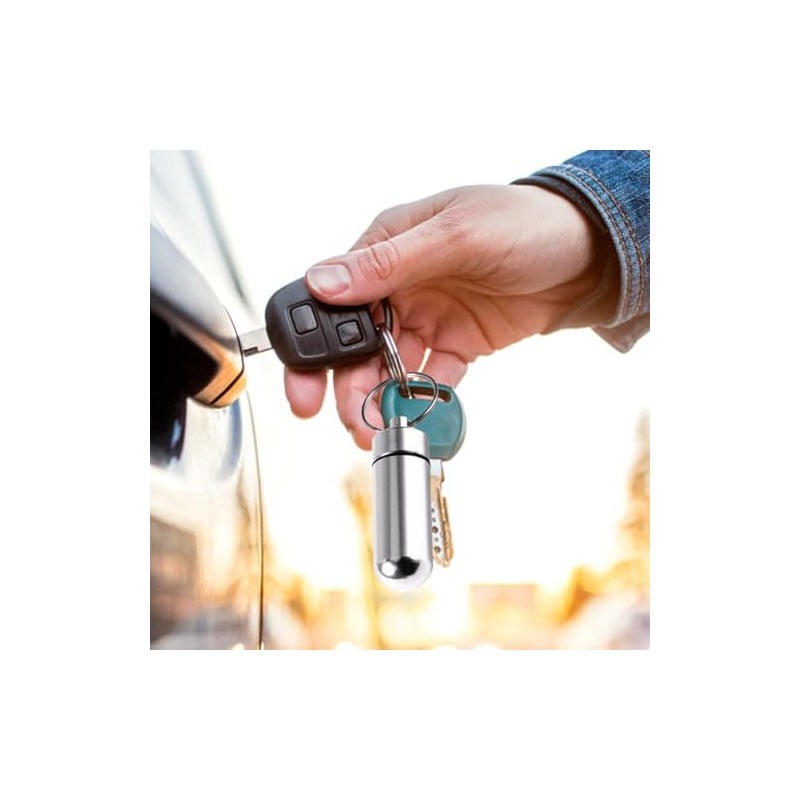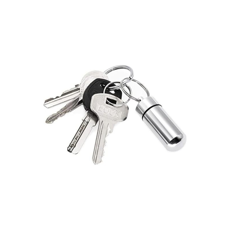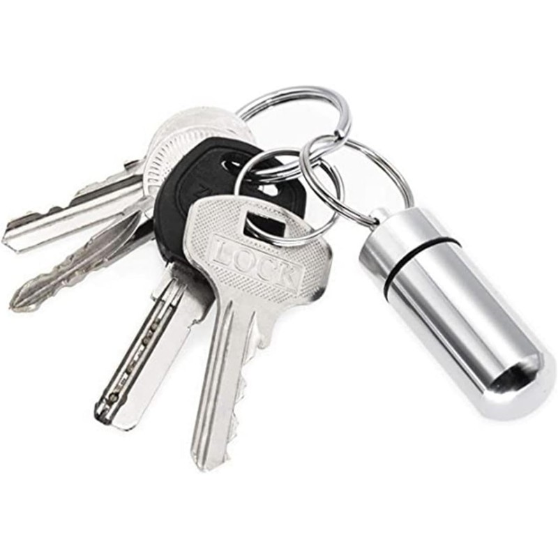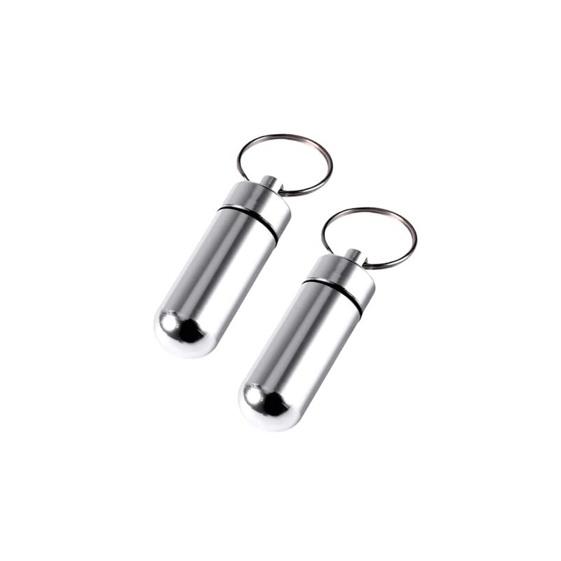 • 【商品詳細】素材:アルミ合金製 セット内容/2個 色/バラック+シルバー 単品のサイズ:直径1.7センチ*高さ5センチ(キーリングを含めない) 単品の重量/10g ※お薬の種類によって、このケースに適用されない場合もございます。常備薬の大きさを確認してからお使いください。