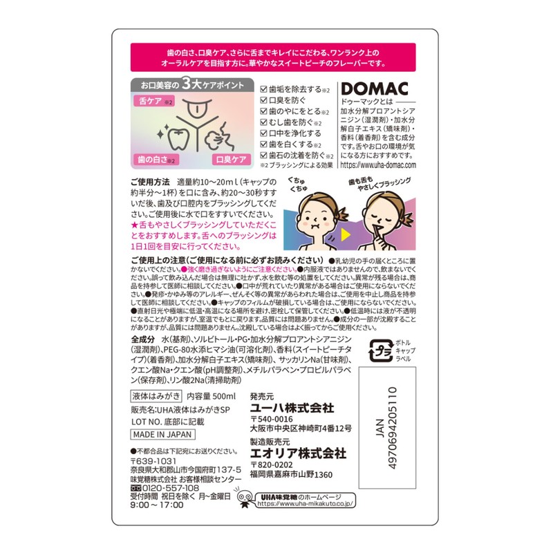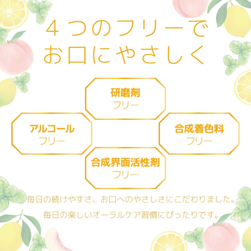 • お口のトリプルビューティーケア/舌から始めるキレイ新習慣/毎日のケアにプラス/ノンアルコールタイプ/特許成分DOMAC配合/スイートピーチ味