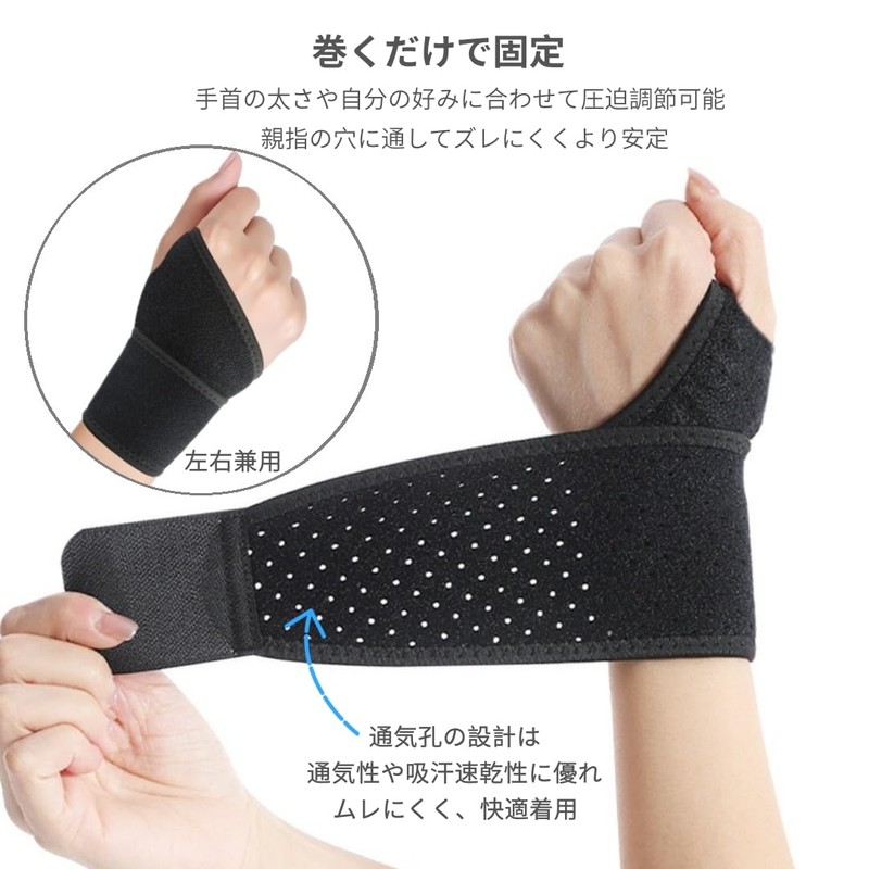 手首サポーター 2枚組 手首固定 筋トレ 怪我防止 再発予防 捻挫 手首保護 保温効果 通気性 ムレにくい トレーニング マジックテープ スポーツ テニス 野球 ボウリング デスクワーク バドミントン バスケ 卓球 調節可能 男女兼用 左右兼用
