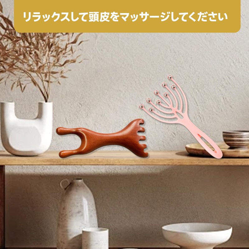 - 【高品質素材】 ヘッドマッサージャー九爪梳はプラスチック製で軽量かつ耐久性に優れる、紅檀梳は天然木材を使用し、滑らかな使い心地、頭皮マッサージ器としての機能性とデザイン性を両立。