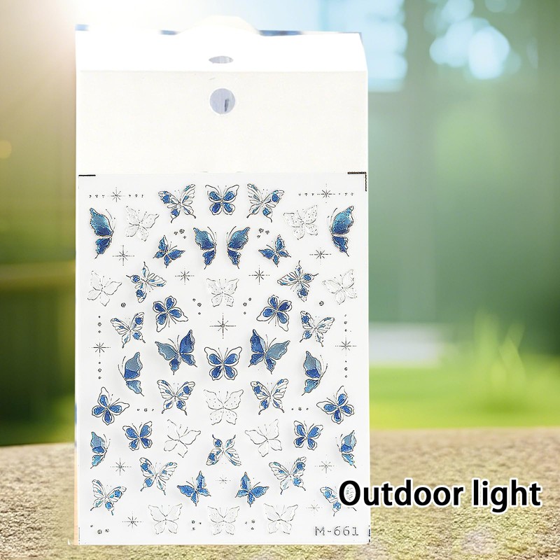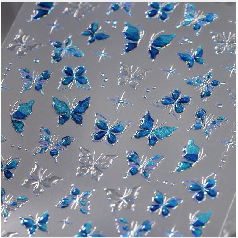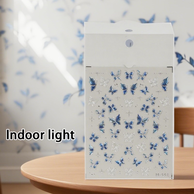 - 【Glitzernde 5D-Effekt-Design】 Dieser nail sticker verfügt über ein goldplattiertes Prägungsdesign, um einen visuellen 5D-Effekt zu erzielen. Unterschiedliche Lichter zeigen auch unterschiedliche Effekte. Strahlende Schmetterlinge und Sterne faszinieren