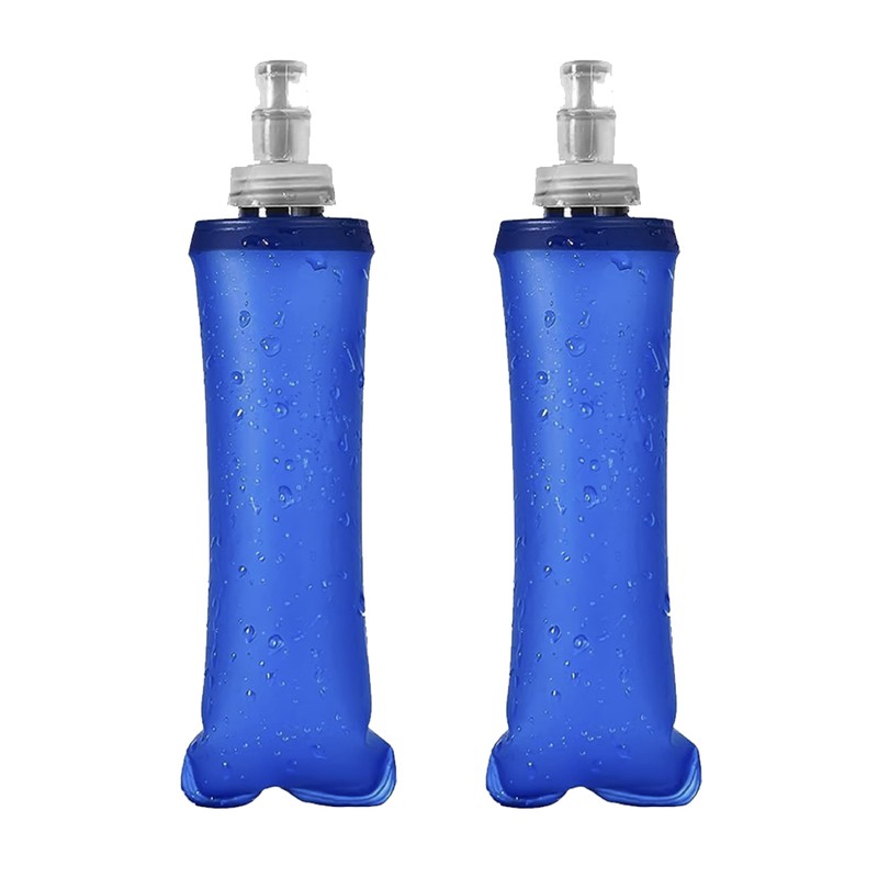 2 Botellas de Agua colo azul de 250ml, Soft Flask, Bolsa de Agua de plástico Plegable para Correr Ciclismo triatlón Senderismo. Soft Water Bottle for Running Cycling Triathlon Hiking (Azul - 250ml)