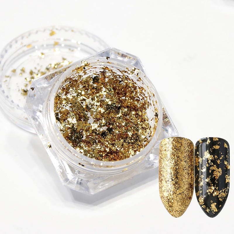 - Package: Packaging includes 2 bottles in golden flash gold foil this foil set comes in 2 style(complete foil flakes and irregular gold flakes). The individual bottle packaging makes it convenient for you.