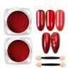 - 【Red Chrome Nail Powder】2 Jars solid red chrome nail powder with 2 sponge eyeshadow sticks. Holographic chrome nail pigments to create unique nail art for you.