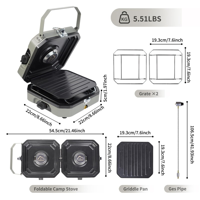 - Weight: Lightweight at 5.5 lbs, ideal for camping, hiking, picnics, and other outdoor activities.