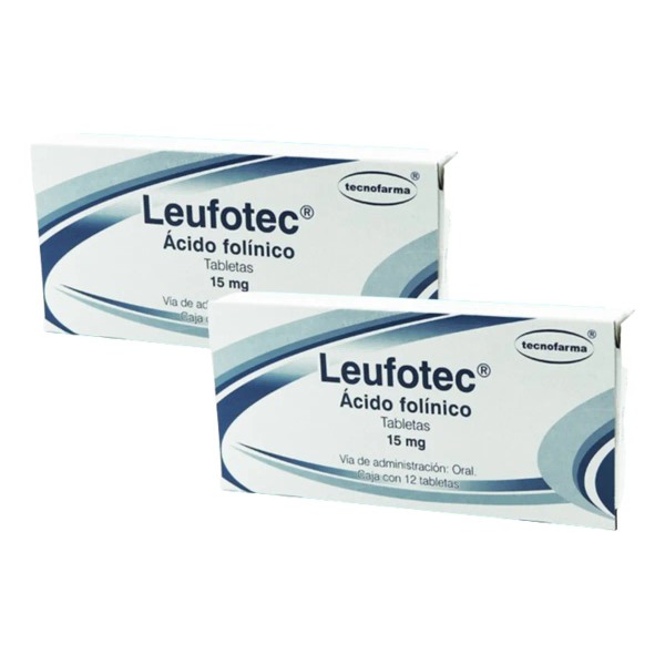 🧬 2 Cajas Ácido Folínico Leufotec Tecnofarma 12 Tabletas 15 mg es un medicamento de uso especializado formulado con ácido folínico (leucovorina cálcica), un derivado activo del ácido fólico, utilizado principalmente para reducir los efectos tóxicos del metotrexato, potenciar ciertos tratamientos contra el cáncer y tratar deficiencias severas de folato. Su acción específica protege células sanas y contribuye a la síntesis adecuada del ADN. 🔬