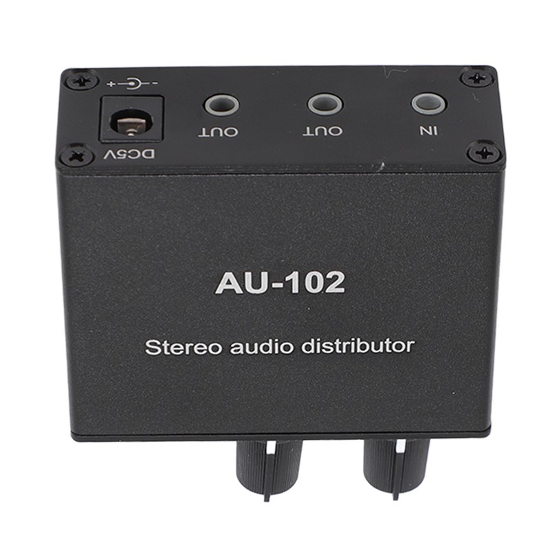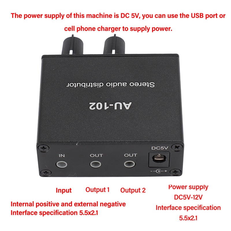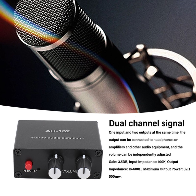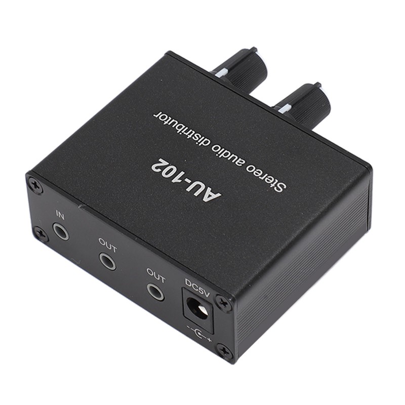1、DUAL CHANNEL SIGNAL: One input and two simultaneous output, the output can be connected to headphones or amplifiers and other sound equipment, and the volume can be independently adjusted, gain: 3.5DB, input impedance: 100K, output impedance: 16‑600Ω, maximum output power: 32Ω 500mw. 2、EXCELLENT OUTPUT: The unit is equipped with an isolated boost power supply, which converts 5V into plus or minus 9V to provide working voltage for the internal circuits. Although the power supply has been optimized for filtering, it is still recommended to use a premium pure power supply to ensure clear and pleasant sound without interference. 3、EXQUISITE AND PRACTICAL: This stereo sound splitter box is mini in size and exquisite in appearance, and the black shell makes it more stylish and powerful. 4、WIDELY COMPATIBLE: Input: DVD, CD, set top box, MP3, TV, cell phone, computer, tablet, microphone, phono turntable, sound card, guitar, bass, electronic instruments, game console or other 3.5mm devices. Output: speakers, subwoofer, soundbar, reverb, post amplifier, headphones, etc. 5、HIGH PERFORMANCE: Stereo switch box brings no loss, sturdy aluminum housing with strong anti interference and long service life.