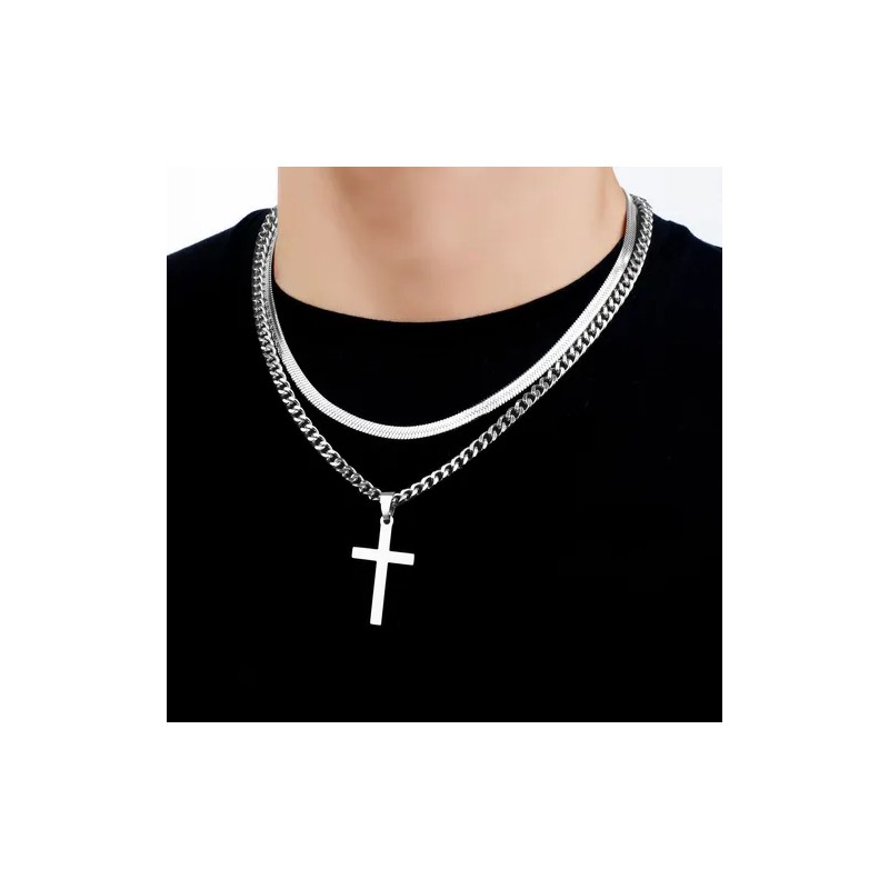Nombre del producto: Conjunto de collar de cruz y cadena cubana en acero inoxidable, accesorio unisex para hombres y mujeres.