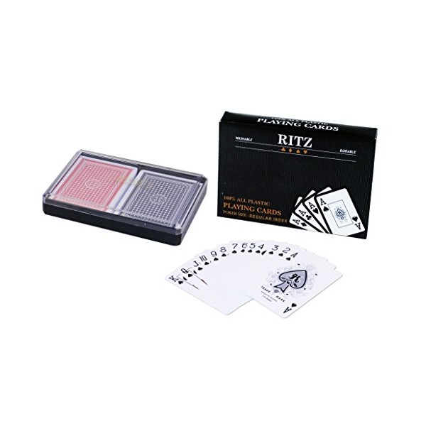 Ritz 2 Decks Poker Size 100% Plastic Playing Cards Set in Plastic Case, Waterproof (Poker Size Wide Regular Index)