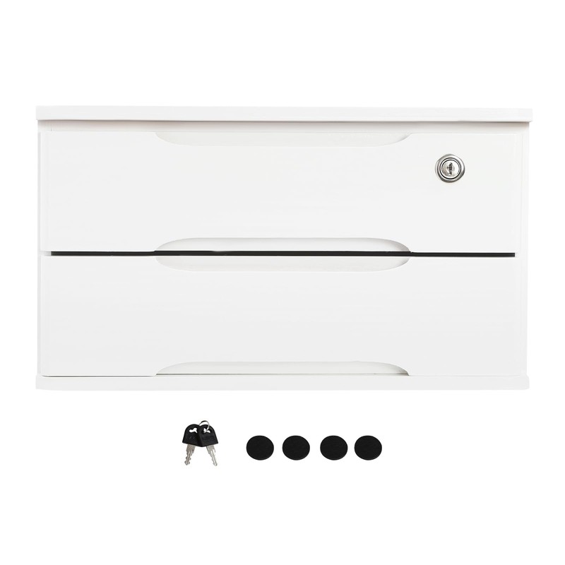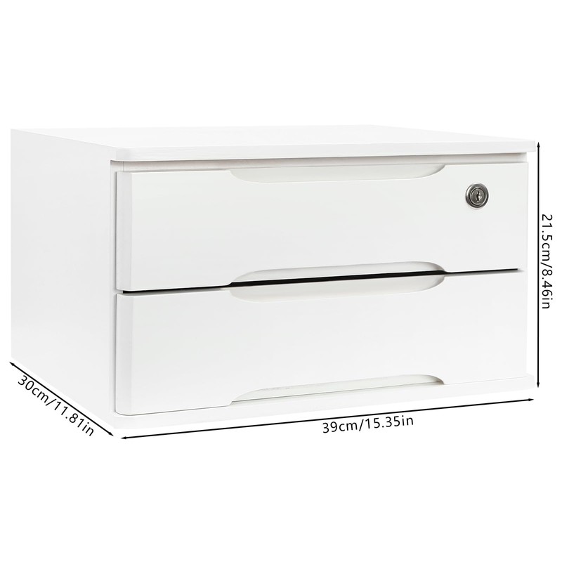2 Drawers Wooden Desktop Storage Box with Lockable Drawers, Wooden Storage Cabinet Organizer Tabletop Storage Organization Box for Office,Home (White)