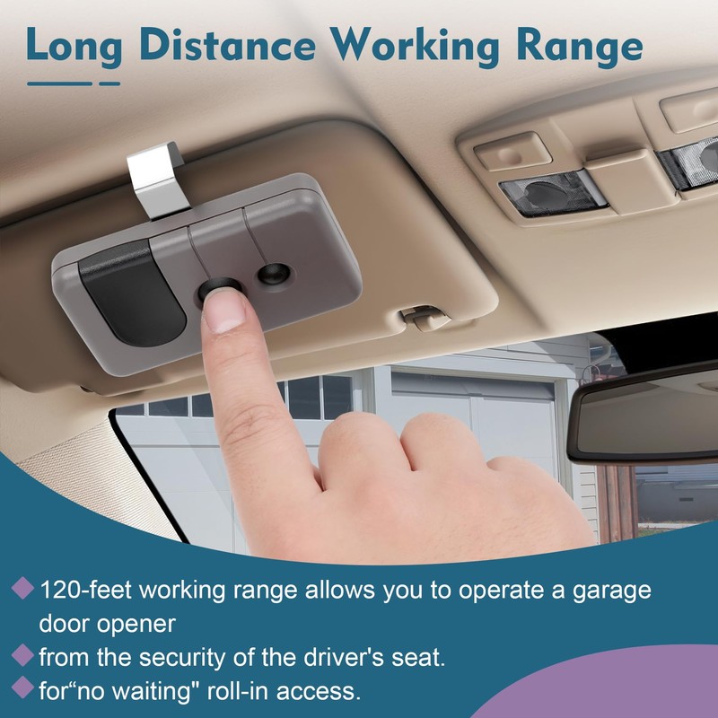 - 【Small and Convenient】: Package includes garage door opener remote * 2, sunshade clip * 2, manual * 2. Each remote come with a visitor clip, so you can easily attach it to your car's visitor and control your garage door while driving.