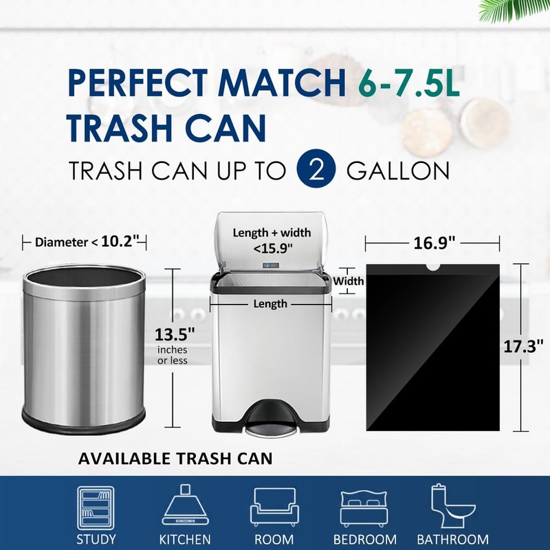 - Multipurpose: Our trash bags are suitable for use in bathroom, bedroom, living room, dining room, office and cleaning pet’s litter and baby diapers.
