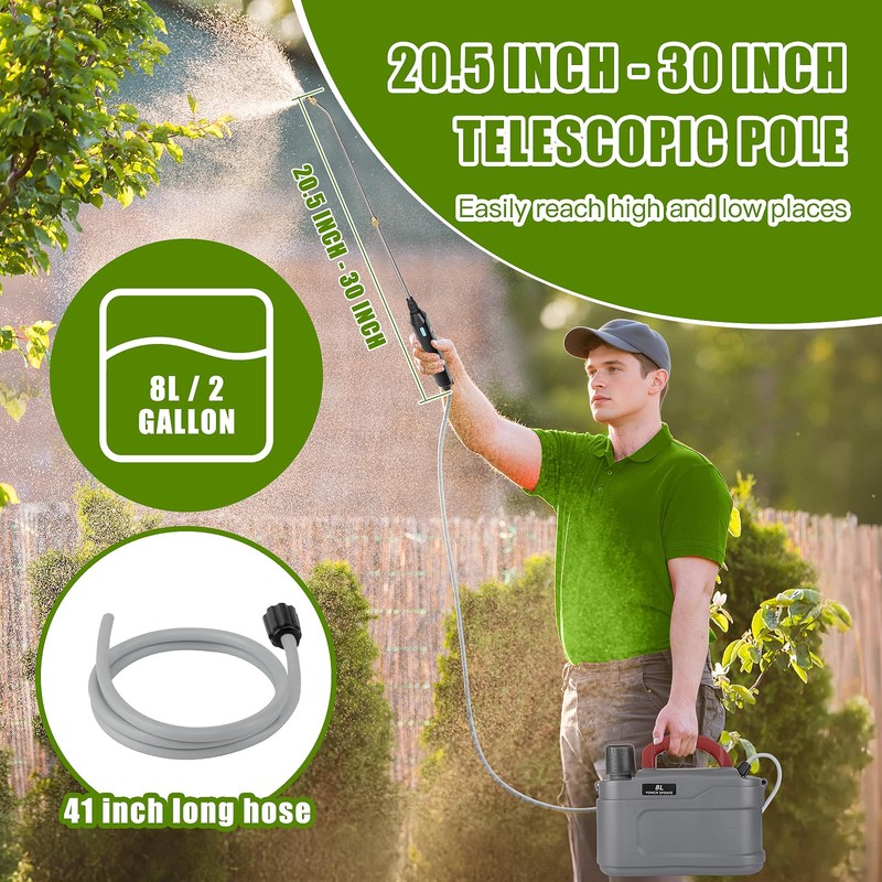 - 【PORTABLE AND COMFORTABLE , FLEXIBLE OPERATION】Adjustable shoulder strap and handheld dual use design to meet different usage habits. The Electric spray bottle, paired with an innovative telescopic handle (up to 30 inches in length), effortlessly sprays high hanging plants or difficult to reach areas in the distance, without any burden.