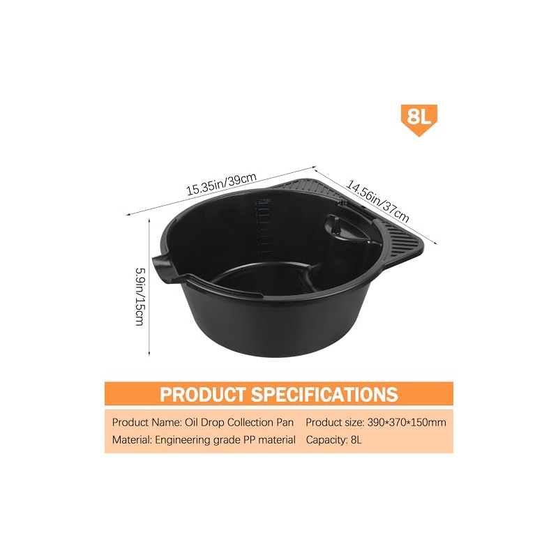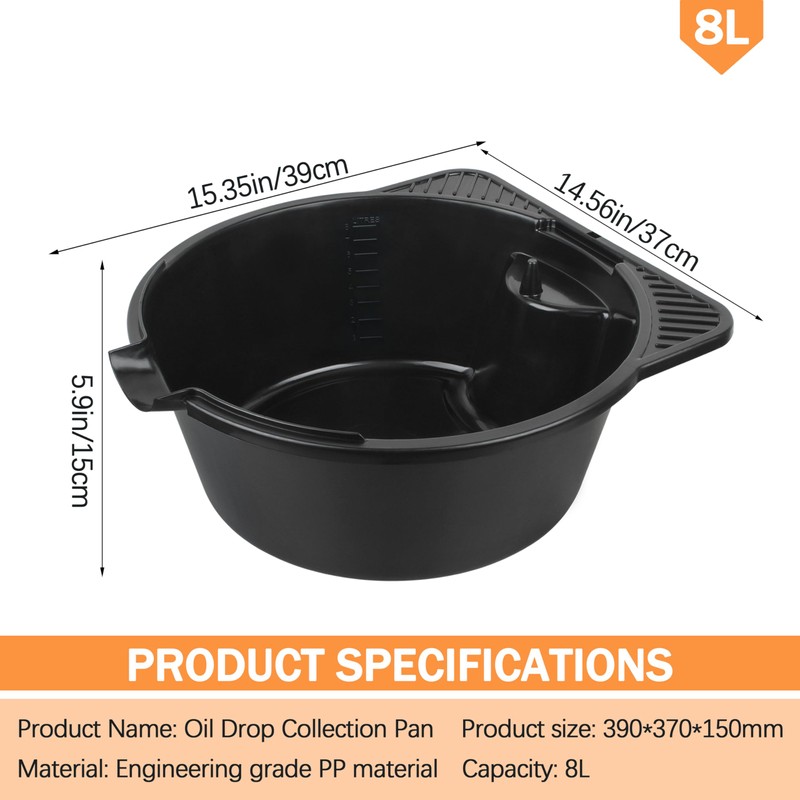 - Oil Drain Pan Capacity: 2 Gallon = 8L