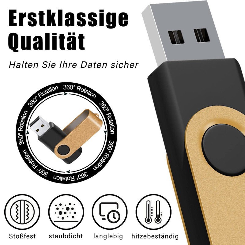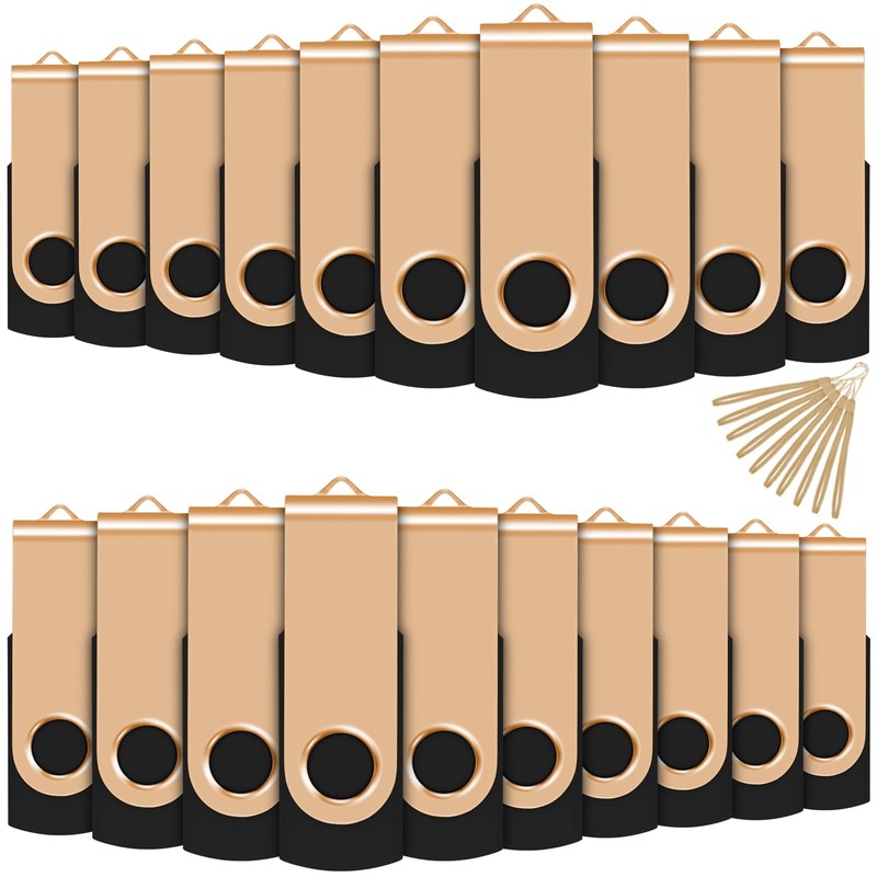 2 GB USB Stick Swivel Flash Memory Drive USB Mmemory Sticks, Pack of 20, Gold