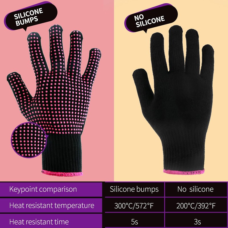 2 guantes de silicona resistentes al calor, resistentes al calor, con golpes de silicona (actualizados) guantes profesionales a prueba de calor para peinado, rizador de pelo y plancha para alisar el pelo